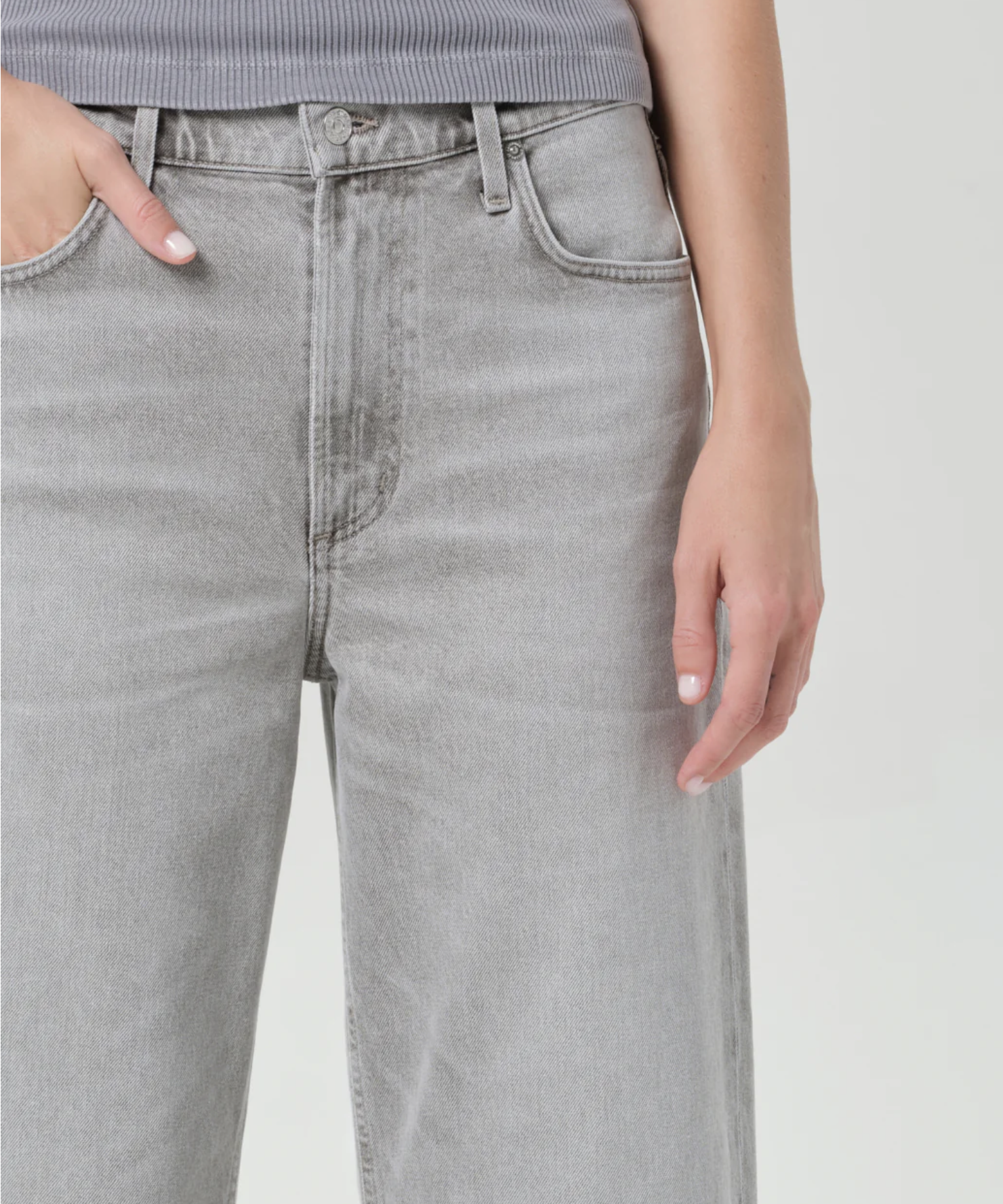Looks Like: Light washed grey denim pant