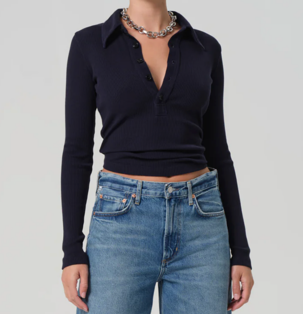 Citizens of Humanity Long Sleeve 60's Polo in Navy