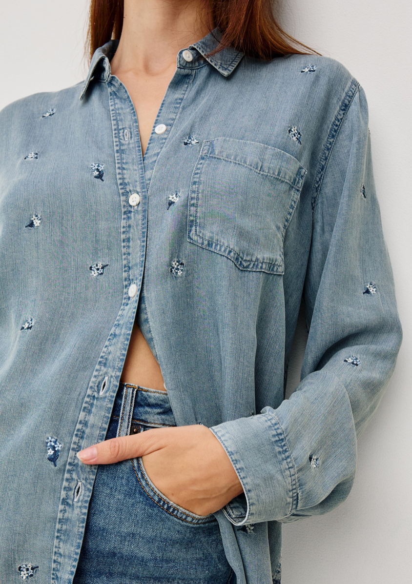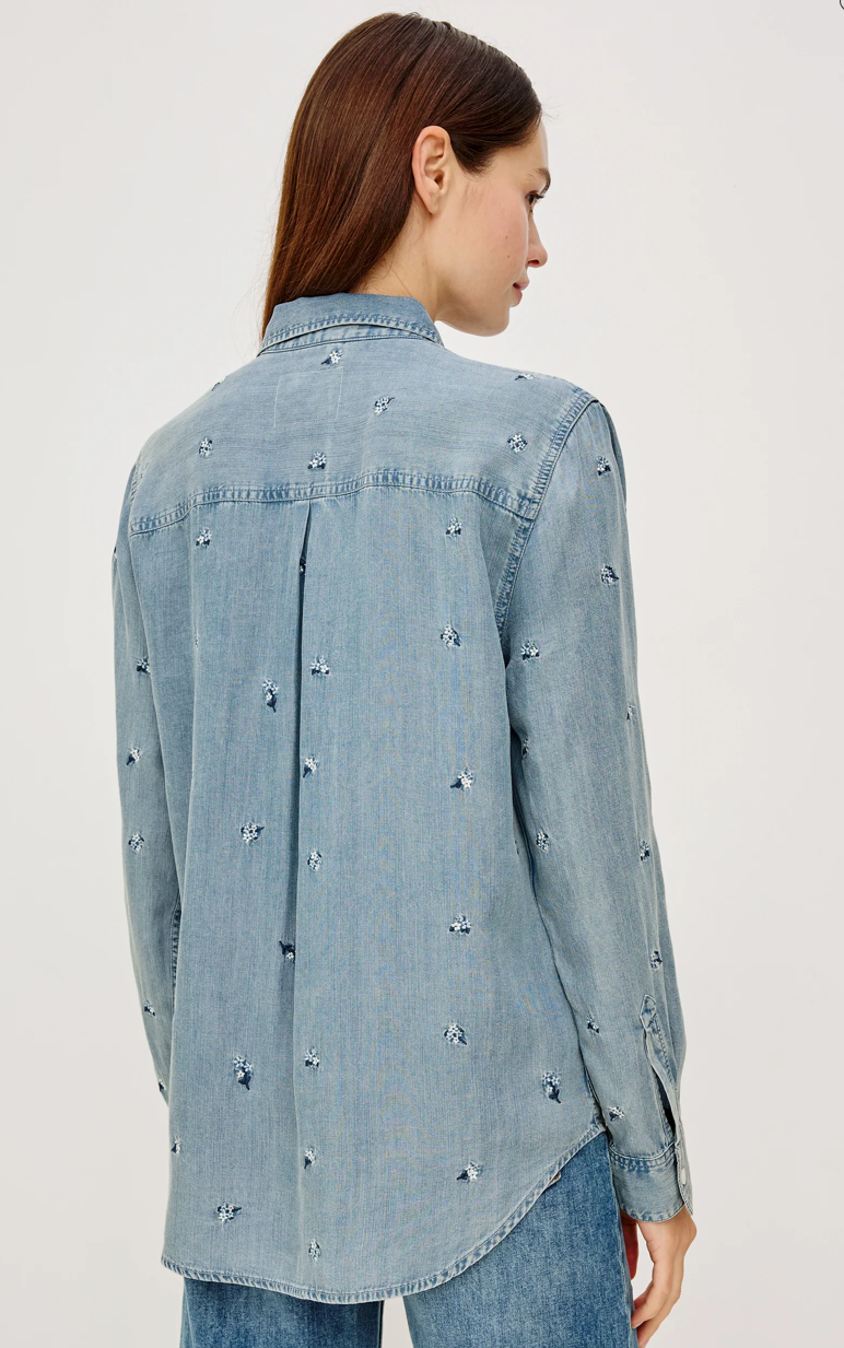 Everyday denim perfected, the Ingrid is super soft and lightweight with long sleeves, button-down styling, vintage-inspired wash, single chest patch pocket, and front buttons.